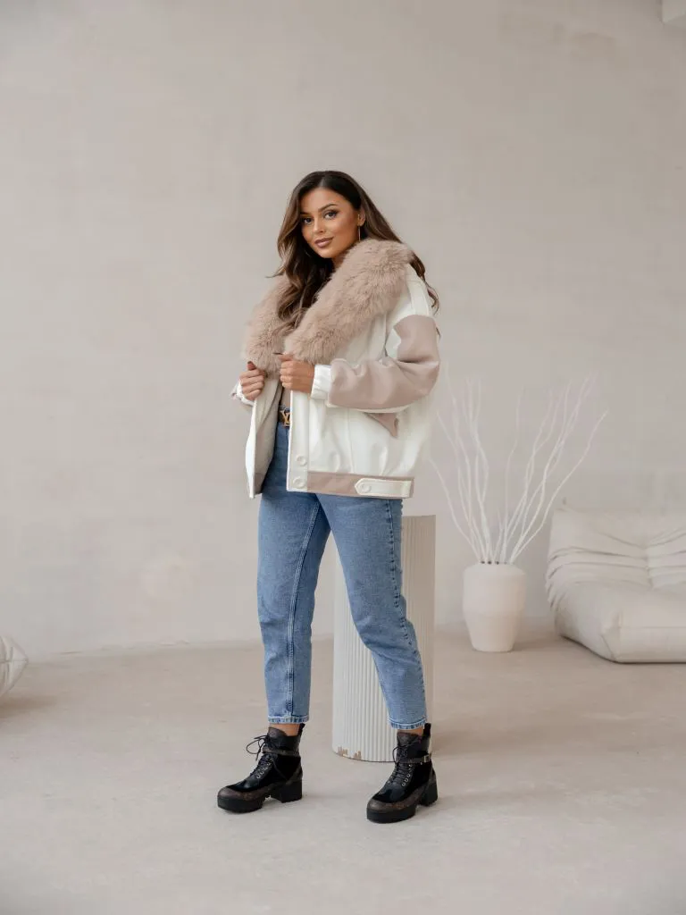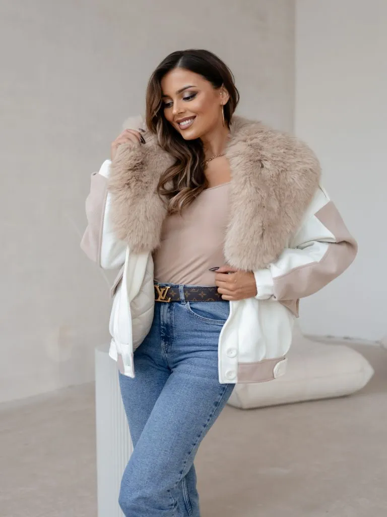 Vegas Fur Jacket - Ecru with Beige