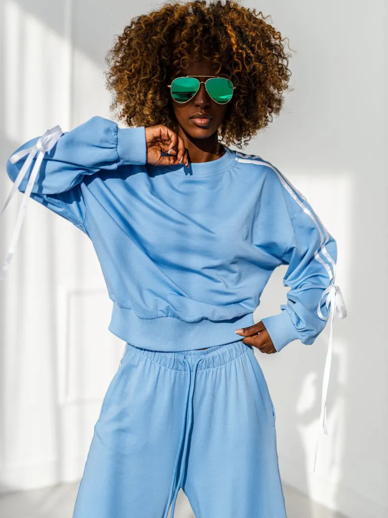 Stylowy komplet dresowy z wiązanymi tasiemkami.